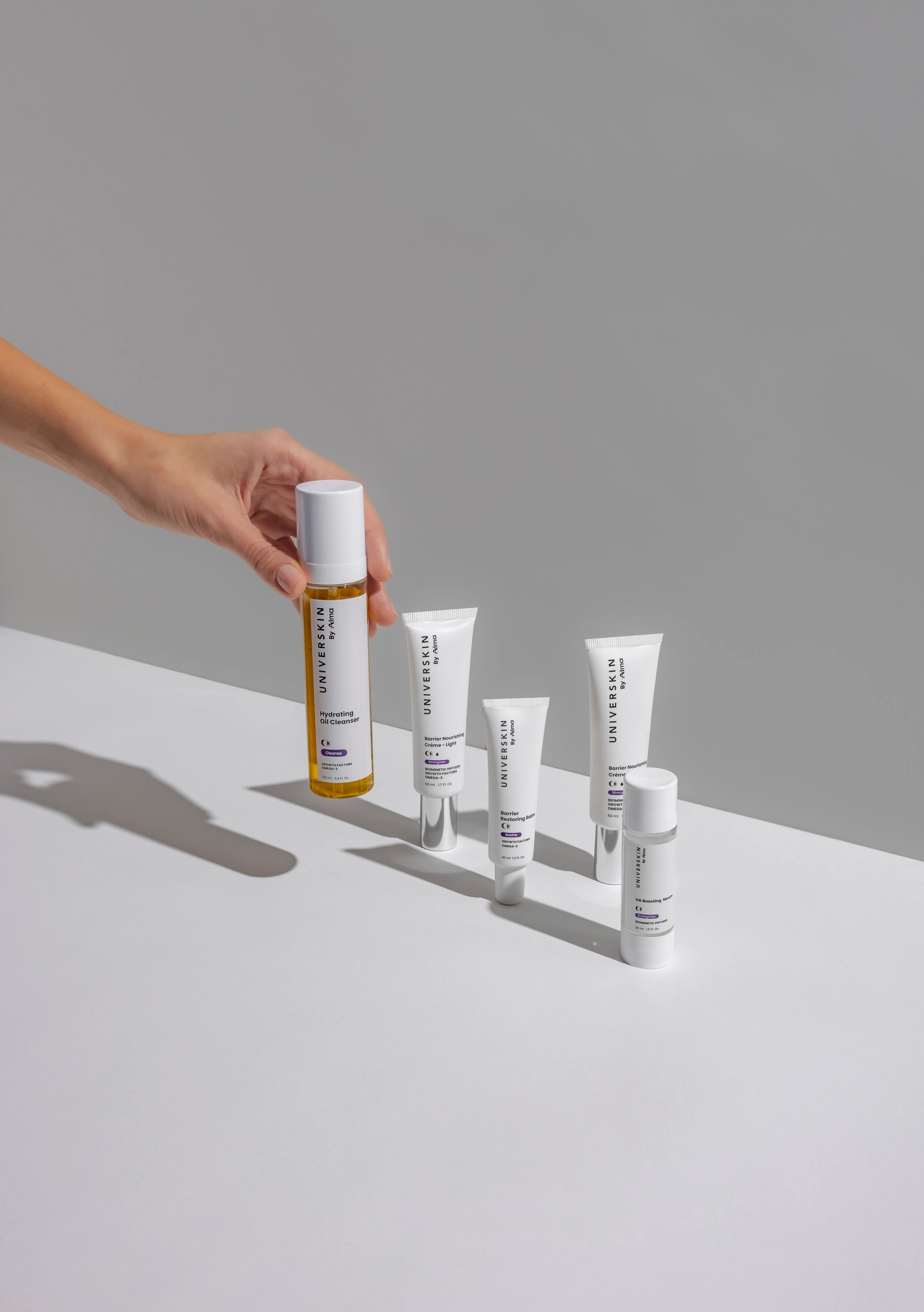 Universkin® bridges the gap between clinical skincare and luxury customization. Patients receive the potency of medical-grade actives—delivered in a personalized, elegant, minimalist formula.